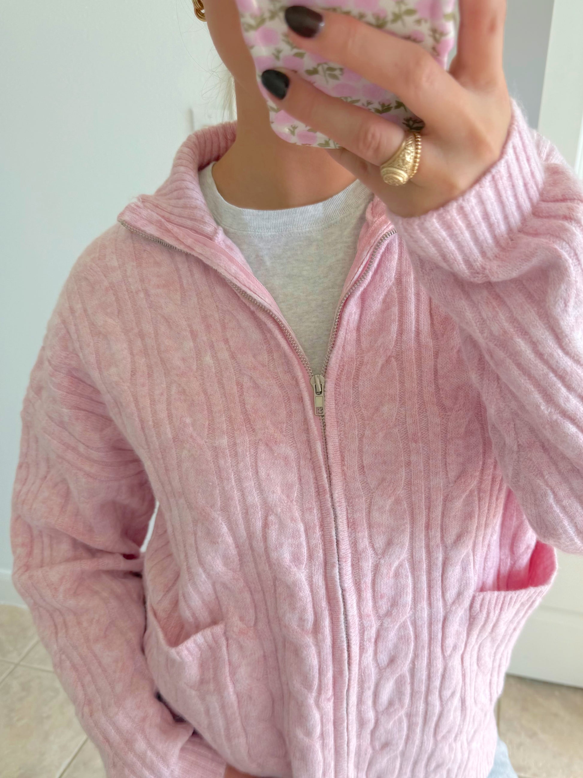 Soft Blush Zip-up Sweater